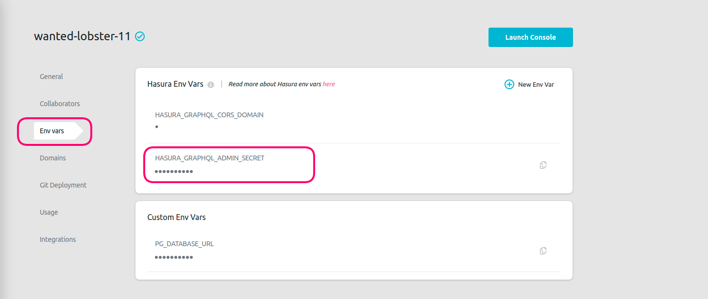 When you launch the console from the Hasura Cloud dashboard, you’ll be authenticated as an admin. If you want to make API calls from outside the console, you need to pass the admin secret as the x-hasura-admin-secret request header.