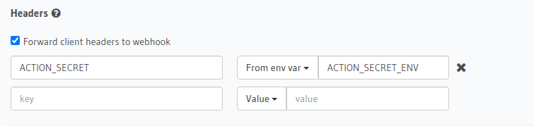 Second, you need to write some code in your action handler to check that the action secret passed as a header equals to the one you stored as an environment variable.