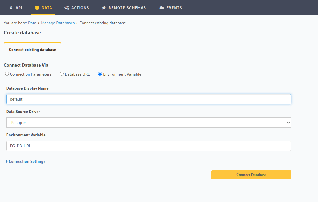 env var as well in which case it gets added automatically as a database nameddefault