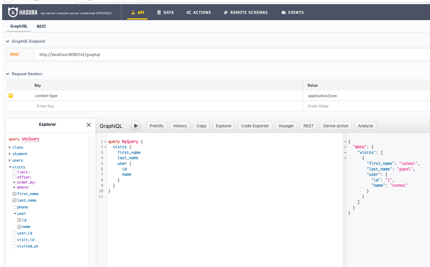 tab in the console and try running a GraphQL query! Use the explorer sidebar on GraphQL to get help in creating a GraphQL query.