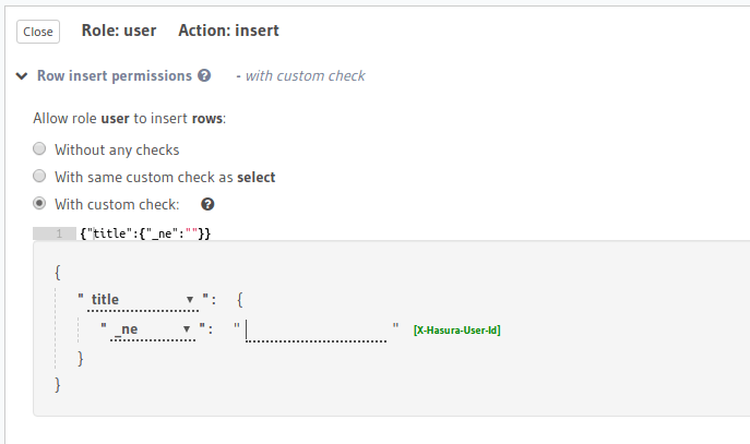 - If you would like the validation logic to be at the GraphQL API layer, Hasura permissions can be used to add your validation.