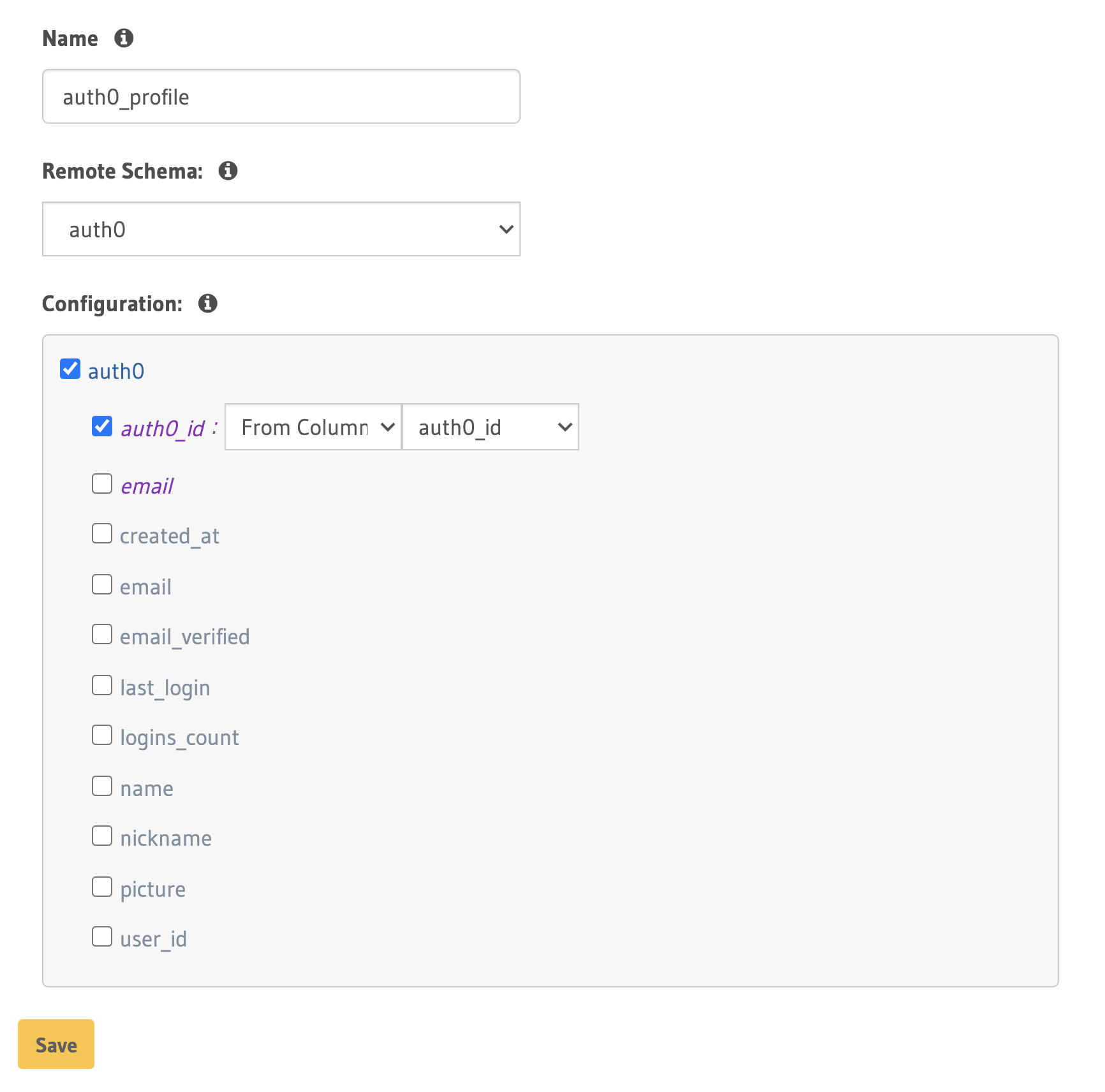 - Remote Schema: Select a remote schema among all the ones you’ve created.