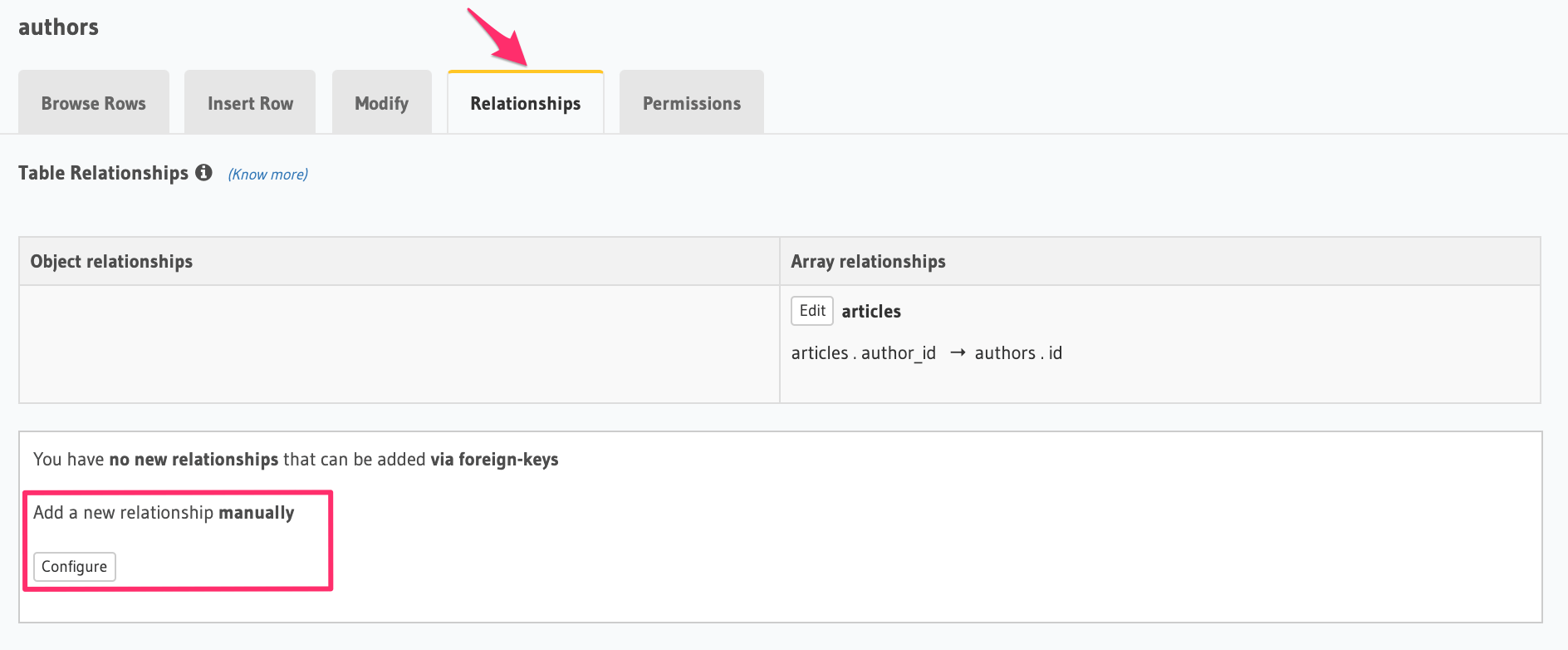 As mentioned in the Introduction section above, relationships can be inferred via foreign-keys that exist in your database: